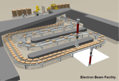 An electron beam is generated through the use of electromagnetic fields in a vacuum to gather and propel electrons to a very high speed. This beam is then quickly scanned up and down over a product as it is moved down a conveyor, resulting in a fully packaged and sterilized end-product.